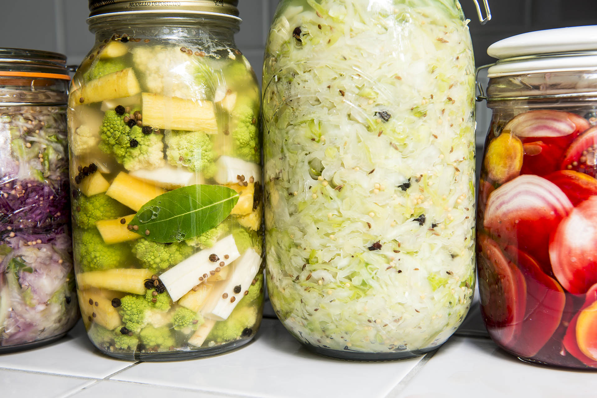 - Experimente mit eingelegtem Gemüse, Kimchi, Fermentationsessigen, scharfen Saucen und anderen Fermentationen